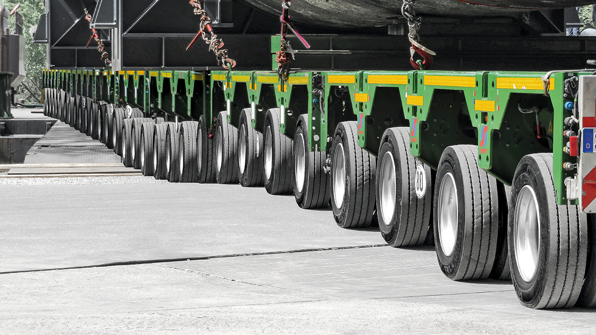 Beim zweiten Anlauf passte es: Der Transportverbund rollte langsam die Zufahrt zum Museum hinab. Frieder Saam, Berufskraftfahrer und Transportleiter bei der Spedition Kübler aus Michelfeld-Erlin, erklärt: »Man freut sich immer, wenn die Ladung schadlos das Ziel erreicht hat. Schließlich stecken fünf Jahre Planung in diesem Spezialtransport.« Neben Know-how und fahrerischem Geschick gehört laut dem Spezialtransportexperten auch die passende Transportausrüstung dazu. Die 30 InterCombi-Achslinien stammen von TII Scheuerle, dem Experten für Schwertransporte auf befestigten Straßen und Off-road aus der TII Group. »Für einen solchen Transport benötigen wir qualitativ hochwertige und robuste modulare Achslinien«, so Saam.