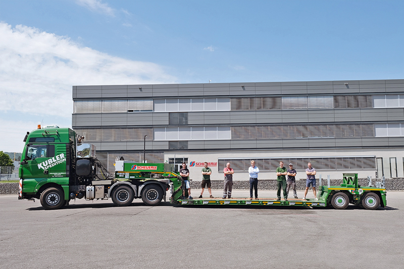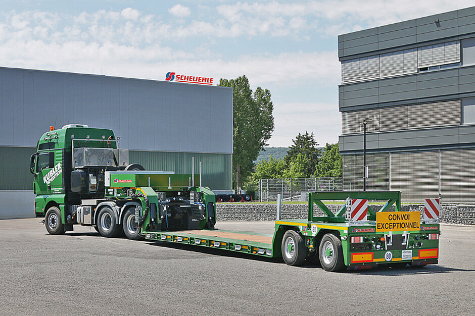 Der Gebietsverkaufs-Manager Martin Rössler hat Kübler das erste Modell des neuen Scheuerle-EuroCompact FL02 übergeben. Felix Mangold, technischer Leiter des Schwergutlogistikers, nahm das Fahrzeug auf dem Scheuerle-Gelände in Empfang. »Mit dem zweiachsigen EuroCompact-Tiefbettauflieger können wir unseren Kunden nun zusätzliche Dienstleistungen in der Nutzlastklasse bis 30 t anbieten.«