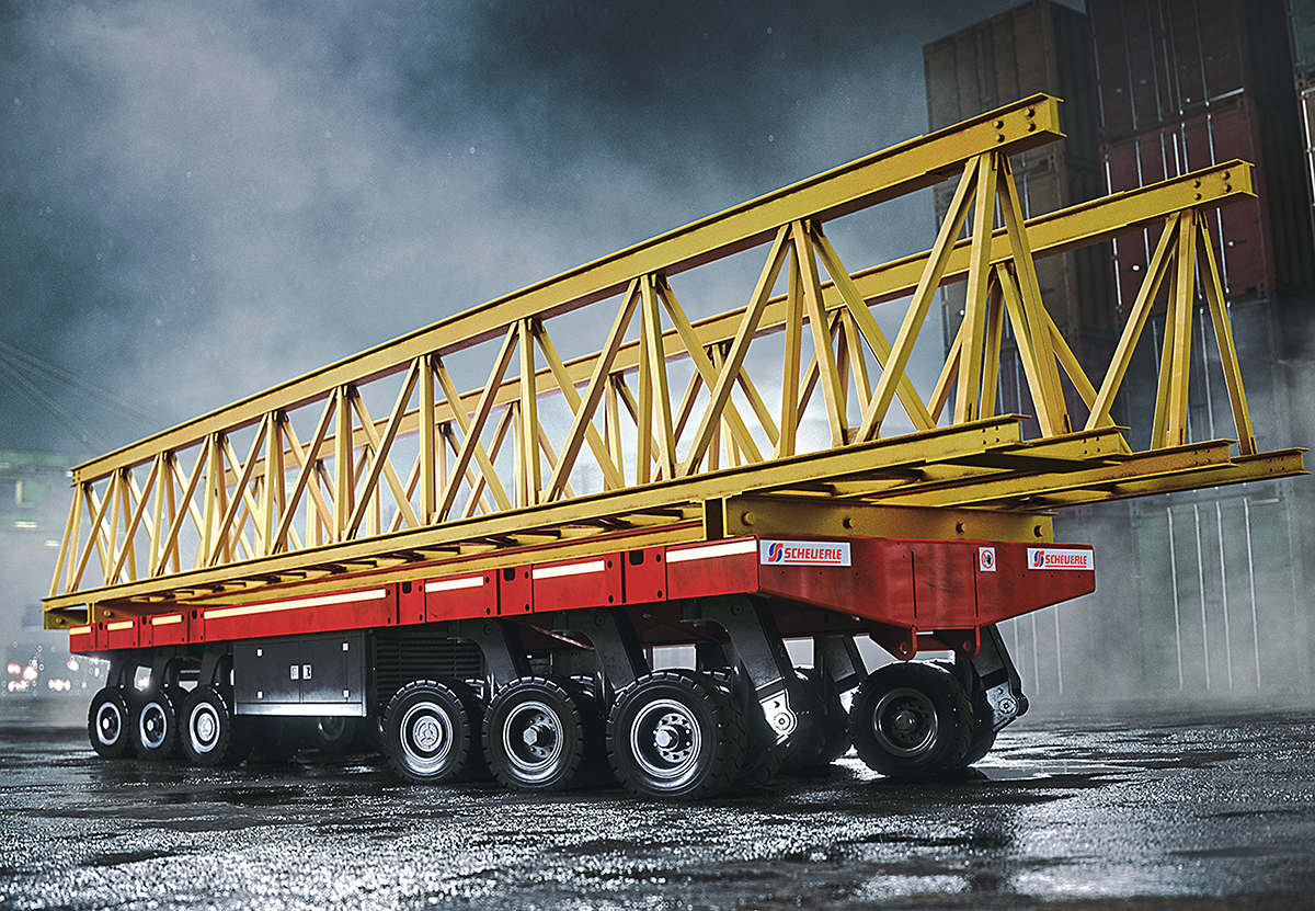 Bisher hatte das zur Transporter Industry International Group (TII) gehörende Unternehmen seine SPMT-PowerHoss- Module mit zwei und vier Achsen angeboten, nun ergänzt Scheuerle eine Version mit sechs Achsen die Baureihe. Während die zwei- und vierachsigen Ausführungen Nutzlasten pro Modul bis zu 85 t bzw. 174,9 t bieten, ermöglicht der Sechsachser bis zu 330 t Zuladung. Zudem lassen sich einzelne SPMT-PowerHoss-Module von Scheuerle nach dem Plug-and-Play-Prinzip unkompliziert entweder mechanisch oder elektronisch im offenen Verbund betreiben und sowohl seitlich wie auch längs miteinander kuppeln, um auch noch höhere Nutzlastforderungen zu erfüllen. So kann ein Verbund von vier SPMT PowerHoss 330 Ladegut mit einem Stückgewicht bis zu 1 320 t versetzen.