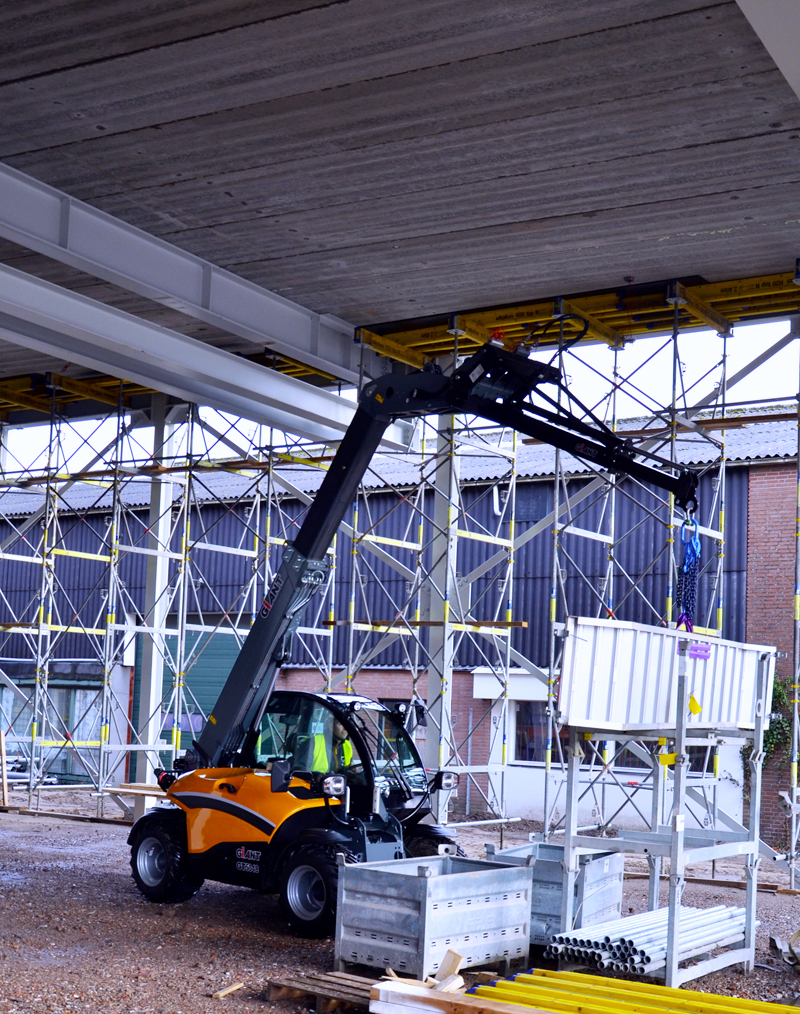 Mit einer Breite von 1,6 Metern und einer Höhe von 1,97 Metern (mit Kabine) fällt der GT5048 in die 2x2-Meter-Klasse für kompakte Teleskoplader. Dank der Allradlenkung hat die Maschine einen geringen Wendekreis (Innenradius 1.200 mm). Dies erleichtert das Arbeiten mit der Maschine in kleinen Räumen oder in Innenräumen. Optional kann der Teleskoplader mit einer Zweiradlenkung und einem Hundegang ausgestattet werden, so dass er leicht seitlich entlang einer Wand bewegt werden kann.