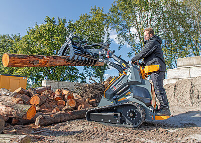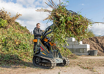 Auf den Baustellen transportiert der Giant Kompost oder Schnittgut ab, bringt unkompliziert Bau- oder Verfüllmaterialien heran, sodass sich die Mitarbeiter auf ihre Kernaufgaben konzentrieren können. Der G2300 be- und entlädt Lkw und sorgt daneben auch für Sauberkeit auf Baustellen und dem heimischen Betriebshof. Für alle diese Arbeiten werden verschiedene Anbaugeräte wie Schaufel, Palettengabel, Pelikanschaufel und Kehrmaschine eingesetzt, die nach der Anpassung der Aufnahme von der Vorgängermaschine übernommen werden konnten. Auch in dieser Hinsicht war Hannes Laiminger sehr begeistert durch die Betreuung durch Christian Hauser: »Ich habe die Maschine bekommen, da passte die Platzierung der Aufnahme nicht ganz zu meinen Geräten. Bei Hauser wurde das so angepasst, wie wir das besprochen haben, nun ist die Aufnahme für die Anbaugeräte ganz nahe am Knickpunkt.s