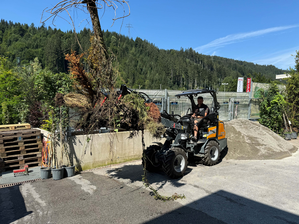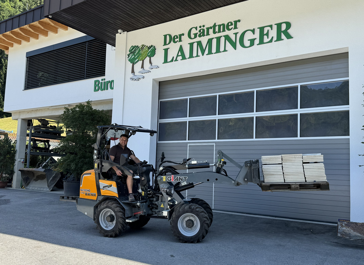Einer der zufriedenen Kunden von Hauser ist Hannes Laiminger aus Hopfgarten, Inhaber eines vor zehn Jahren gegründeten Gartenbauunternehmens mit 15 Mitarbeitern. Laiminger bietet seinen Kunden im privaten und gewerblichen Bereich die komplette Gestaltung von Außenanlagen von der Beratung über die Umsetzung bis hin zur Pflege an. Im Dienstleistungsportfolio enthalten sind u. a. die Anlage von Beeten und Grünflächen sowie der Bau von Teichen, Holzstegen oder Holzeinfassungen oder Pflasterarbeiten. Mit dem G2300 HD X-TRA hat das Unternehmen im letzten Jahr den Radlader einer anderen Marke ersetzt, da dessen Hubleistung bei der täglichen Arbeit häufig nicht ausreichte. Der Giant hebt bis zu 2,2 t, was sehr wichtig ist, wenn die Mitarbeiter von beschwerlichen Arbeiten wie dem manuellen Transport schwerer Lasten entlasten werden sollen. Der Giant bewegt beispielsweise problemlos ganze Steinpaletten vom Lkw zur Pflasterfläche.