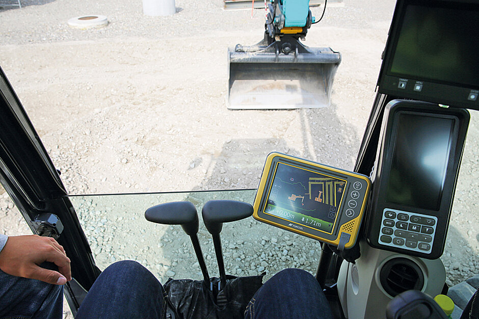 Um diese Erläuterungen der Arbeitsabläufe visuell zu unterstützen, verwendet Topcon am Messestand auch Bildschirme, auf denen die einzelnen Arbeitsschritte für jeden nachvollziehbar dargestellt werden. Neben kurzen Live-Präsentationen gibt es außerdem wetterabhängig kleinflächige Live-Demos am Messestand. §