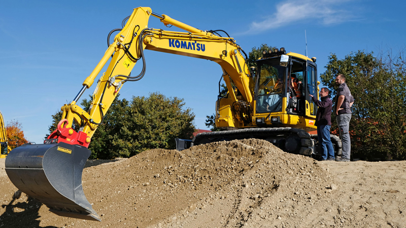 Viele Roadshow-Besucher waren auf die neue Topcon-3D-Steuerung X-53x automatic gespannt und wollten diese auch selbst testen. Vor dem Bagger, auf dem das Topcon-3D-Steuerungssystem installiert war, drängten sich nach Veranstalterangaben die Testwilligen. »Der Maschinenführer kann das System per Knopfdruck bedienen. Die automatische Tiefensteuerung ist auf der Ebene, an Geländestufen und in der Neigung beispielsweise an Böschungen möglich«, erklärt Jürgen Karch, Sales Manager Construction für Deutschland, Österreich und die Schweiz bei Topcon. »Der Kunde ist damit rund 20 % bis 30 % produktiver, die Arbeitsqualität und -genauigkeit ist über den ganzen Tag gleichbleibend hoch und die Höhentoleranzen vom Auftraggeber werden eingehalten.« Als weiterer Besuchermagnet habe sich zudem eine Präsentation in Zusammenarbeit mit RIB Software erwiesen. Die Besucher konnten dabei erleben, wie aus Daten reale, ineinandergreifende Bauprozesse werden. t