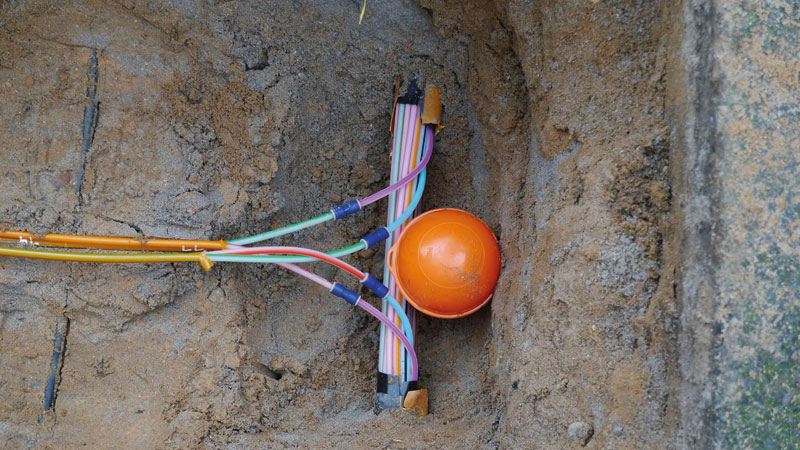 Die schnelle unterirdische Rohr- und Kabelverlegung entlang von Straßen (FTTC) und unter