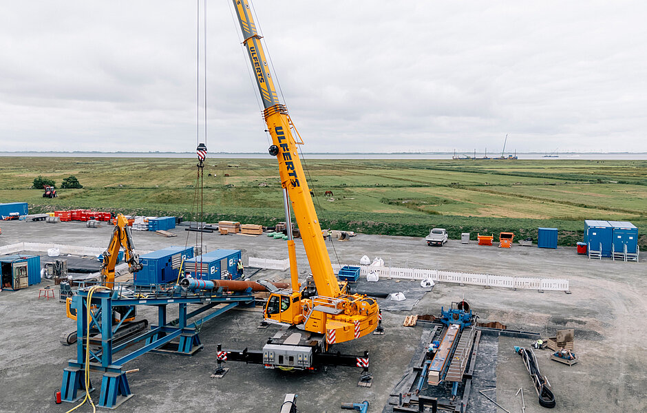 Aufgrund des engen Zeitplans begann das Team von LMR bereits während des Einbaus des dritten Casings mit dem Aufbau der beiden HDD-Großbohranlagen. Nachdem die Pilotbohrungen durch diese entlang der vorgegebenen Kabeltrassen erstellt sind, werden die Stahlrohre herausgezogen und die Kabelschutzrohre vom südlichen Watt aus in den Bohrkanal eingezogen. Sie werden im nächsten Jahr wiederverwendet, um die Casings für die Verlegung der Kabelschutzrohre in nördliche Richtung einzubauen. Anschließend werden die beiden Schutzrohrstränge an den Bohreintrittspunkten mit Muffen verbunden und die Stromkabel eingezogen. Über die Muffengruben sind die Leitungen dauerhaft zugänglich. Die Inbetriebnahme der Netzanbindungssysteme wird 2030 (BalWin1) und 2031 (BalWin2) erfolgen – ein bzw. zwei Jahre früher als geplant. Grabenlose Technik macht’s möglich.