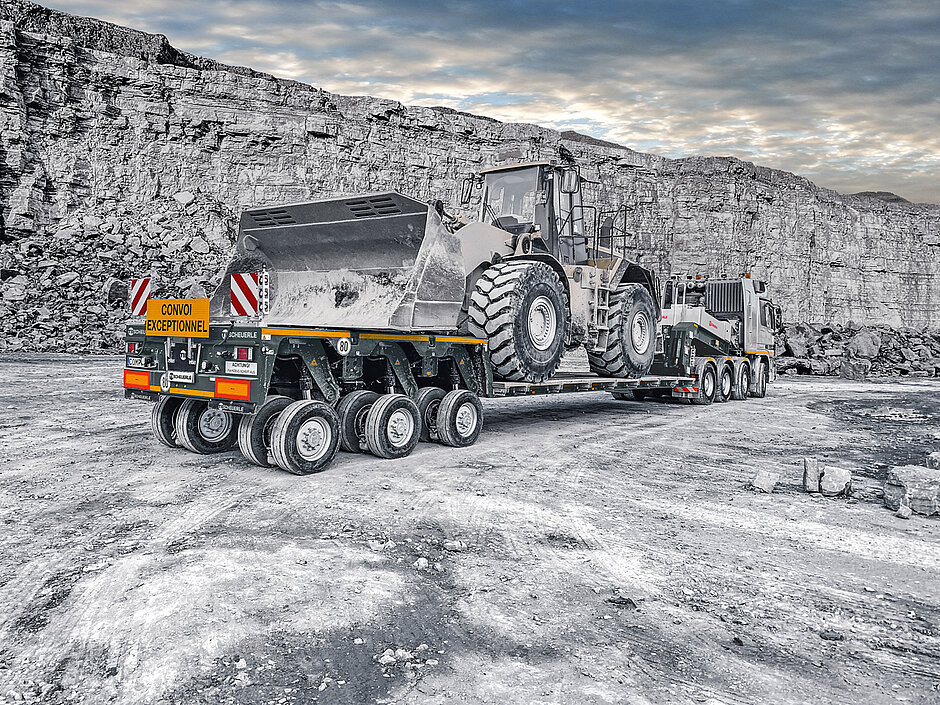 Die »K25«-Schwerlastmodule, die TII Scheuerle an zwei Standorten produziert, sind die laut Hersteller »ideale und wirtschaftlich effiziente Wahl für eine Vielzahl anspruchsvoller Anwendungen«. Dazu gehören der Transport übergroßer und schwerster Baufahrzeuge, dazugehöriger Komponenten, Fertigbauteile und leistungsstarker Transformatoren. Je nach Bedarf ist eine einfache und kostengünstige Anpassung oder Erweiterung des Systems möglich. Neben dem vollmodularen Aufbau der Baureihe trägt auch das umfangreiche Zubehörprogramm zur vielseitigen Verwendbarkeit bei. TII Scheuerle zeigt in München stellvertretend eine Kombination aus Vierachsmodul mit Zuggabel und einem vierachsigen Split-Modul. Dadurch ist es möglich, den »K25« zu einer Drei-File-Kombination zu verbinden, um Fahrzeugbreiten von 4 bis 5 m und damit eine erhöhte Standsicherheit zu realisieren.