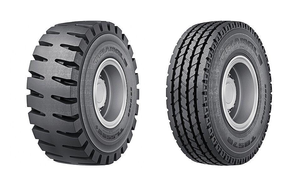 Wichtige Exponate auf dem Messestand sind der für Mobilkrane entwickelte Reifen 445/95R25 »TB576« 174F E2, welcher für eine verbesserte Betriebseffizienz auf eine leichte Konstruktion setzt, und der für Radlader im Über- und Untertagebau entwickelte Drei-Sterne-Reifen 29.5R25 »TL559S+« L5. Letzterer ist für schwerere Lasten geeignet als sein Zwei-Sterne-Gegenstück und bietet nach Herstellerangaben »eine überlegene Aufprallfestigkeit, ein verbessertes Verschleißverhalten und eine maximale Tragfähigkeit«. Mit seinem tiefen, robusten Profil sei der »TL559S+« ideal für schwere Industrie- und Recyclinganwendungen geeignet. Ein weiteres Highlight ist der RDT-Reifen 27.00R49 »TB599A« ** E4 mit einem Durchmesser von 2,7 m für starre Muldenkipper und schwierigste Bedingungen im Steinbruch und Bergbau. Laut Triangle Tyre kombiniert der »TB599A E4« »außergewöhnliche Langlebigkeit mit herausragender Zuverlässigkeit und ist die bevorzugte Wahl für große Bergbauunternehmen weltweit«.