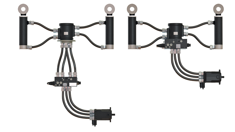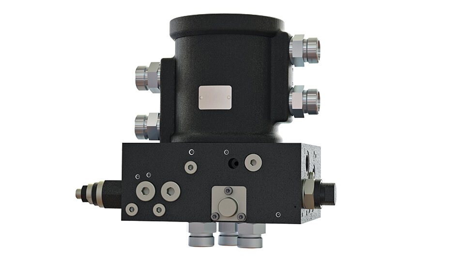 Ergänzt wird das RPP von Tries durch die nächste Ausbaustufe in Form des RotationPowerPackElectrical (RPPE). Hier wird die Kombination aus Steuerblock und Drehdurchführung um einen elektrischen Schleifringüberträger erweitert. Diese bietet nicht nur eine noch kompaktere Bauform dieser drei zusammengefassten Elemente, sondern ermöglicht auch eine intelligente Steuerung. Mithilfe eines integrierten Drehwinkelsensors können gewisse Funktionen direkt winkelabhängig aktiviert werden. Parallelschaltungen der Fahrkanäle in Mobilanwendungen wären denkbare Möglichkeiten, um in Fahrstellung höhere Geschwindigkeiten bzw. geringere Druckverluste zu erreichen. t