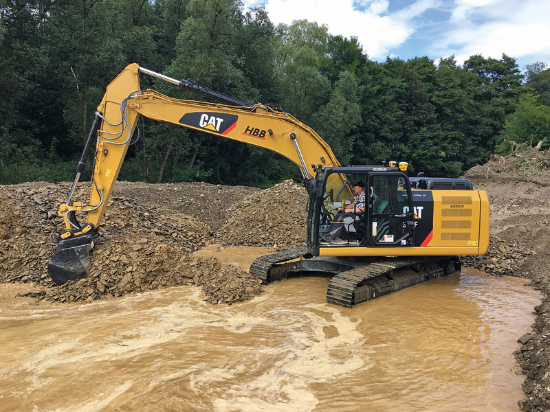 Als die Anschaffung eines Kettenbaggers anstand, entschied sich Hermann Böhl für die neue Trimble-Earthworks-Baggersteuerung. »Mit der vor zwei Jahren angeschafften Business Center Software HCE haben wir schon viele umfassende digitale Geländemodelle (DGM) gerechnet, jetzt können wir beide Systeme verbinden und die erstellten Daten werden unmittelbar synchronisiert, ob vom Büro auf die Baustelle an den Bagger oder umgekehrt.«
