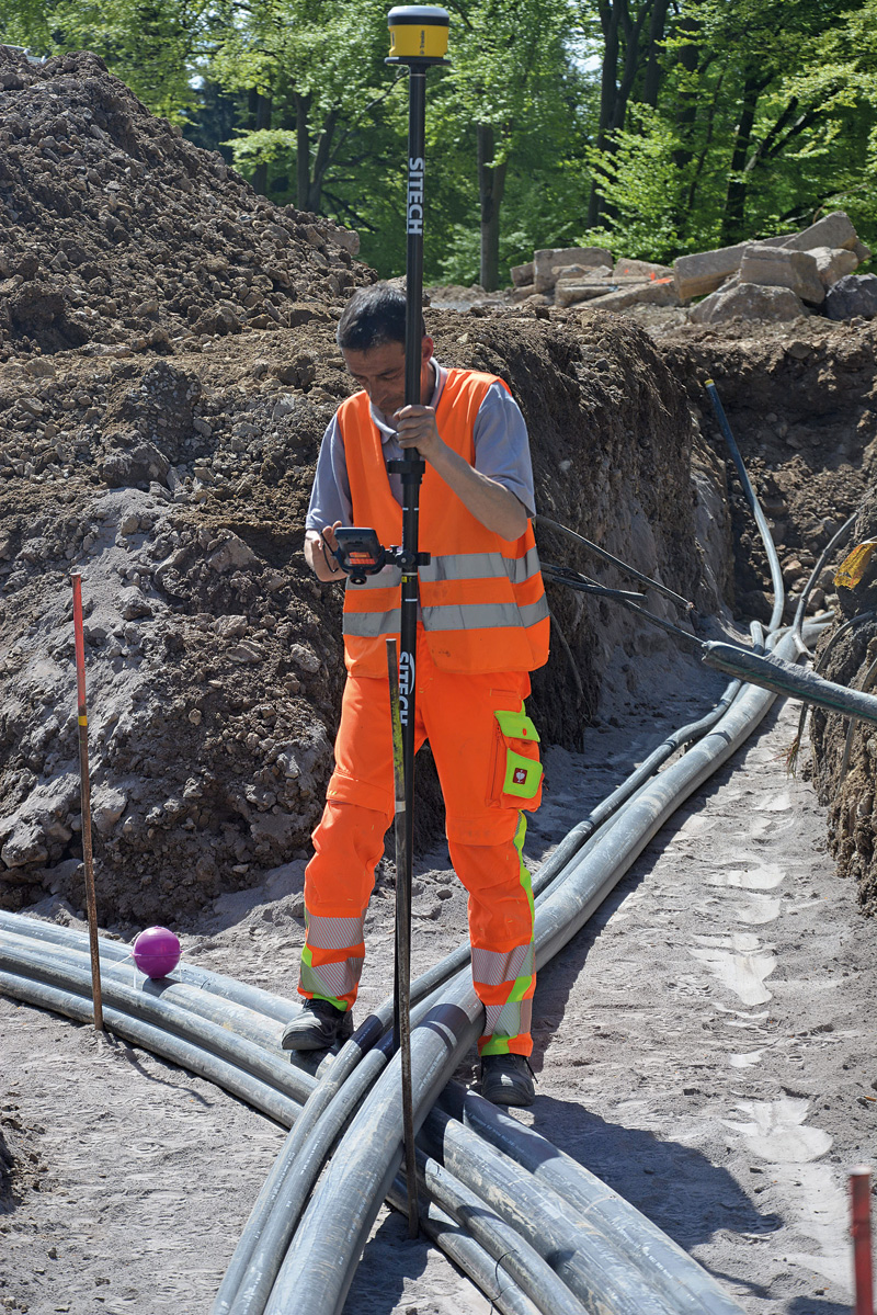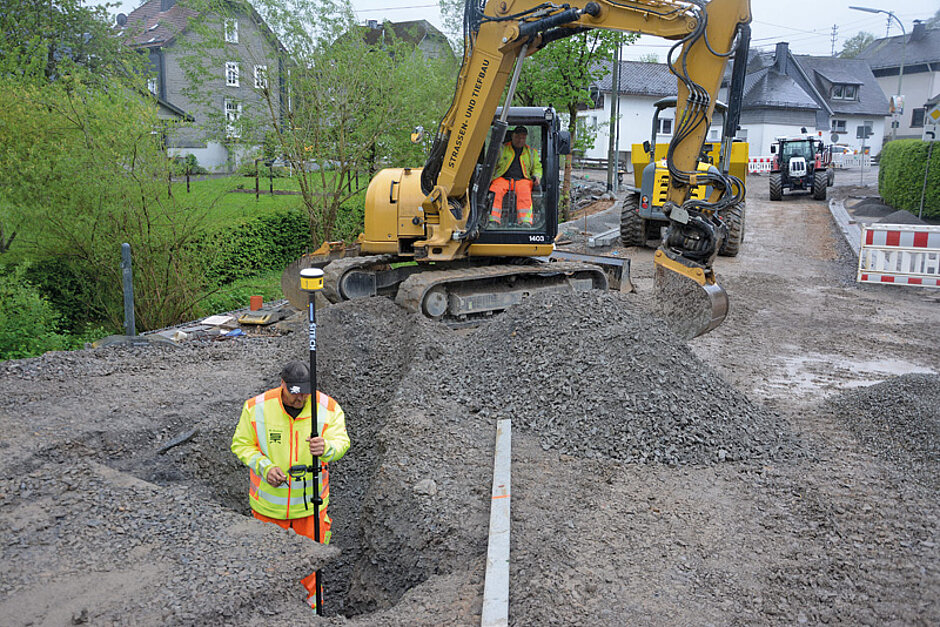 Das Kirchhundemer Unternehmen Straßen- und Tiefbau konzentriert sich auf die Aufgabenbereiche Erdbau, Kanalbau sowie Straßenbau und hat seit der Gründung 1956 das Leistungsspektrum kontinuierlich erweitert. So werden auch Wohn- und Gewerbegebiete erschlossen, Deponien saniert und Kläranlagen gebaut. Gerade angesichts der Vielzahl an unterschiedlichen Aufgaben hat sich das Unternehmen bewusst für die Anschaffung von fünf Roverstäben entschieden, um auf den Baustellen die Vermesser deutlich zu entlasten. Mithilfe der Trimble-Roverstäbe kann der Schachtmeister die notwendigen Punkte nun leicht selbst herstellen und behält so auf der gesamten Baustelle den erforderlichen Überblick. Nicht zuletzt wegen der leichten Bedienbarkeit und des übersichtlichen Displays überzeugten die Positionierungsgeräte bereits unter verschiedensten Bedingungen.