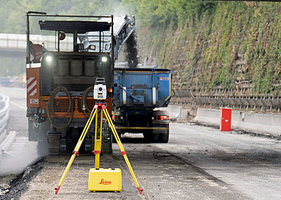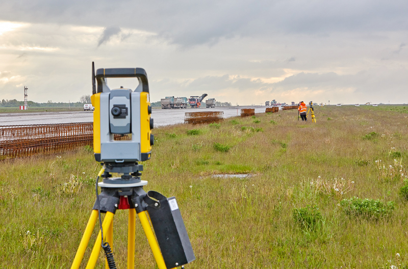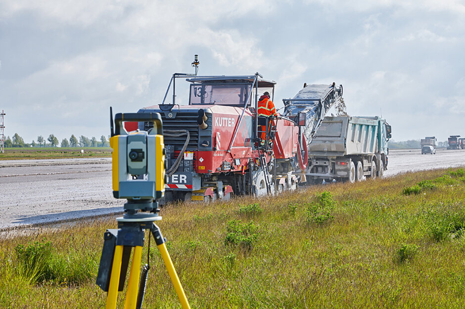 Als weiterer Pluspunkt erwies sich die stabile Kommunikation zwischen Totalstation und Prisma: Beim Trimble-System erhält jedes aktive Prisma eine individuelle Adresse. Die Totalstation wird auf diese konkrete Adresse programmiert. Das ermöglicht ein schnelles Wiederfinden des Prismas nach einer Signalunterbrechung. »Dieses Merkmal macht den ›Hot swap‹, den Wechsel der Totalstationen, sehr einfach. Damit ist diese Lösung ideal für Baustellen, auf denen es viele Prismen und andere reflektierende Objekte gibt«, betont Norbert Mattivi. Am Flughafen Leipzig/Halle zahlte sich diese Eigenschaft insbesondere beim Fräsen der langen Start- und Landebahn aus. »Mit vier Totalstationen in Reihe konnten wir den Fräsprozess reibungslos aufrechterhalten, auch wenn es dort regen Baustellenverkehr, zahlreiche Maschinen und Lkw gab«, bestätigt Bauleiter Dreer.