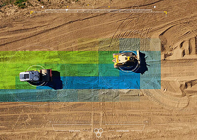 Die Verdichter kommunizieren untereinander und erzielen mit optimierten Fahrwegen eine zeitsparende und einheitliche Verdichtung des Untergrunds. Die Fahrer jeder Maschine wissen daher in Echtzeit, welche Bereiche bereits ausreichend verdichtet wurden und welche noch überfahren werden müssen. Per »Trimble WorksManager« werden Echtzeitinformationen zum Arbeitsfortschritt in die Kabine übertragen, sodass Über- oder Unterverdichtung vermieden werden können. Die positiven Folgen: So sollen nicht nur die Effizienz gesteigert, sondern auch Zeit, Geld und Kraftstoff eingespart werden.j