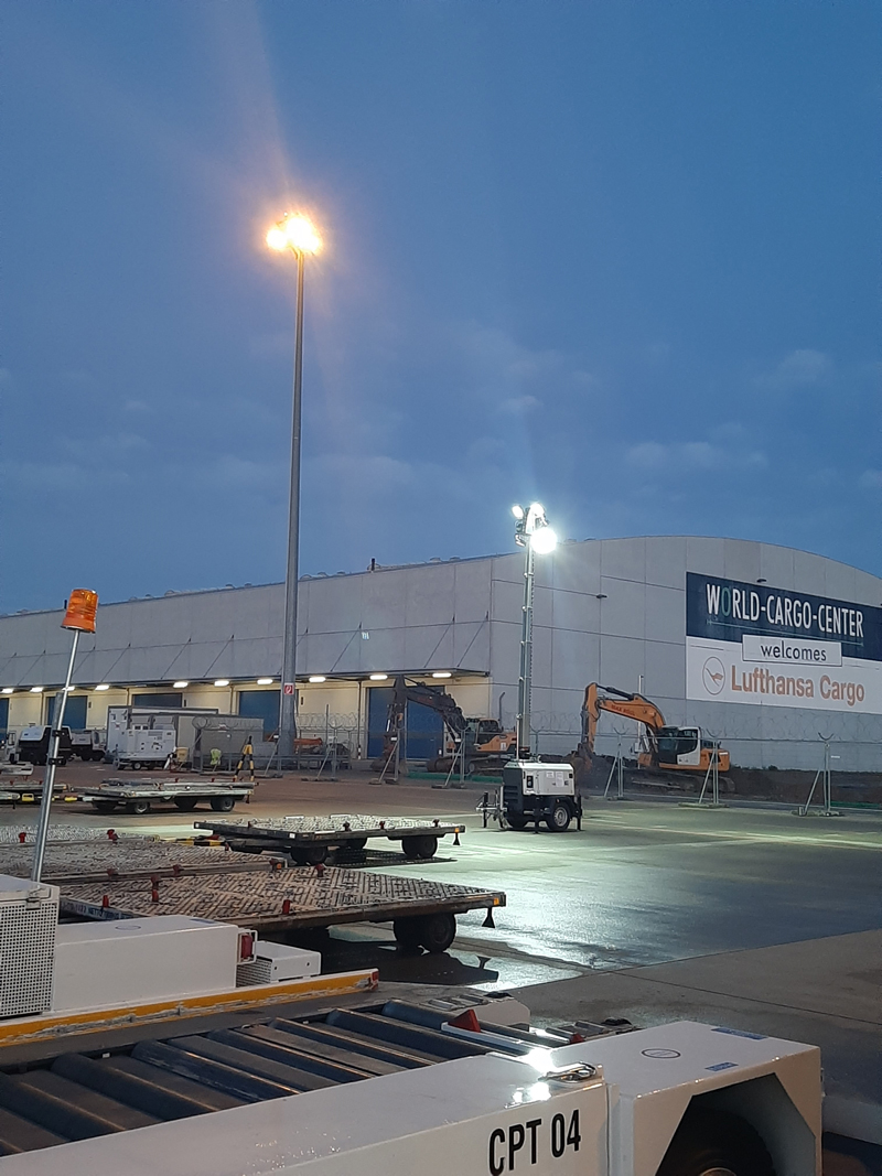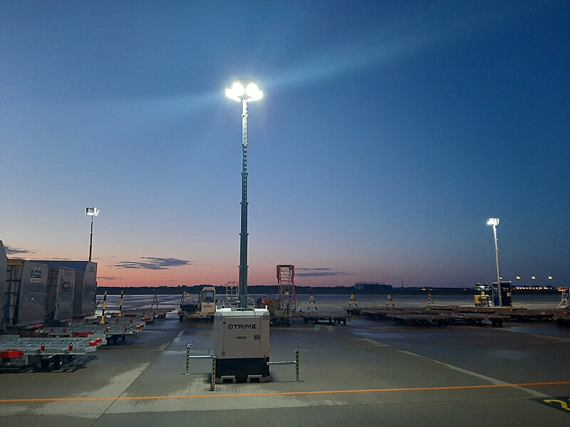 Der TRIME Generalimporteur für Deutschland und Österreich, die LEHMANN Notstromaggregate Service GmbH, brachte nach einem erfolgreichen Lichttest mit einem X-RENT 6x320W LED kürzlich die passende Beleuchtung für den Arbeitsbereich des weltweit agierenden Luftfracht-Unternehmens ANTONOV-Salis auf dem Flughafen Leipzig-Halle in Position und setzt in der Vermietung mit ihrer Muttergesellschaft Elektro LEHMANN sowie den beiden Partnern HEiN Mietservice aus Frankfurt und TOVAR Mobile Energy aus Münster aktuell außerdem auch eine temporäre Beleuchtungslösung mit 24 mobilen Lichtmasten für Umbauarbeiten auf dem Flugvorfeld des gleichen Flughafens um.