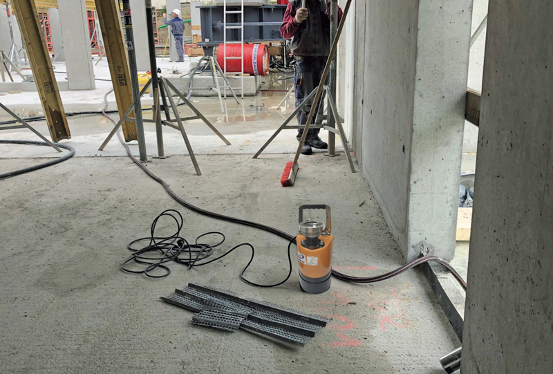 Die neue Restwasserpumpe LSC2.75S ist eine um laut Hersteller 36 % stärkere Version der LSC1.4S (das bauMAGAZIN berichtete in Heft 2/22, Seite 73). Mit jetzt 750 W Motorleistung bewegt der lediglich 37 cm hohe Flachsauger 228 l/min oder pumpt bis auf 15 m Höhe. Von ebenem Boden zieht die Pumpe Wasser bis zu 1 mm Resthöhe ab, dabei muss der Saugvorgang nicht beaufsichtigt werden, auch läuft laut Hersteller beim Umsetzen kein Wasser zurück. Dank schmalem Gehäuse passt die Pumpe zudem durch ein DN200-Rohr.