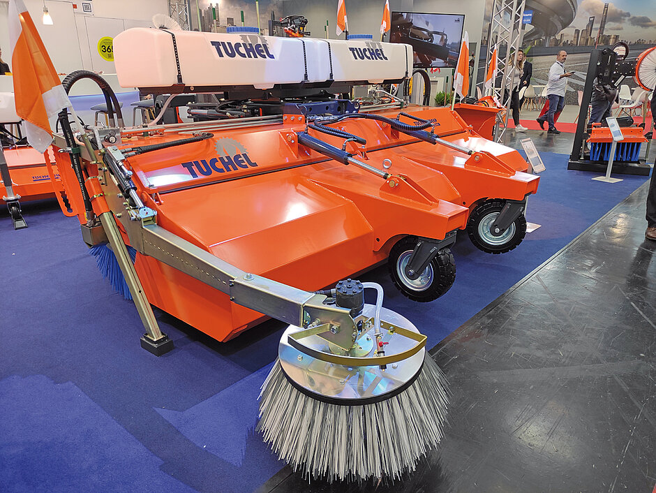 Angebaut an schwere Lader oder Schlepper soll sich die Profi Gigant 920 durch ihre durchdachte Technik, Robustheit und eine enorme Reinigungsleistung auszeichnen. Eine zügige Reinigung von großen Flächen beispielsweise auf Recycling- und Gewinnungsbetrieben, Flughäfen, Hafengeländen, Großbaustellen, Industrieflächen oder auch Biogasanlagen soll für das Schwergewicht von Tuchel kein Problem darstellen. Angetrieben von zwei innenliegenden Hydraulikmotoren inklusive Stromregelventil und Kehrwalzennachlaufsicherung sieht Tuchel die entsprechende Leistung garantiert.