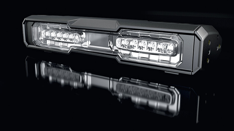 Der schwedische Beleuchtungsspezialist Tyri hat die neue Lightbar V12 vorgestellt, mit der das Unternehmen anspruchsvolles Design im »Automotive Style« mit intelligenter Beleuchtungstechnik kombinieren will. Die Neuheit ist als optisches Highlight u. a. für Baumaschinen und Traktoren sowie SUV konzipiert und wird laut Hersteller bereits von Fiat Chrysler/Jeep verbaut. Die Lightbar kann direkt oder mittels diverser Halterungen vorn oder auf dem Fahrzeugdach montiert werden. Die Streuscheibe ist aus einem besonders widerstandsfähigen Polycarbonat gefertigt, das Gehäuse aus Aluminiumdruckguss. Die Lichtverteilung beschreibt Tyri als sehr ebenmäßig, die Streuscheibe ist austauschbar. Die Lichtleistung der 37 cm langen Lightbar beträgt 4 300 Lumen, die Farbtemperatur liegt bei tageslichtähnlichen 5 700 K, die Ausleuchtung ist laut Hersteller sehr homogen und etwas breiter als bei Lightbars sonst üblich. Sie entspricht der EMV-Klasse 5 nach CISPR 25. t