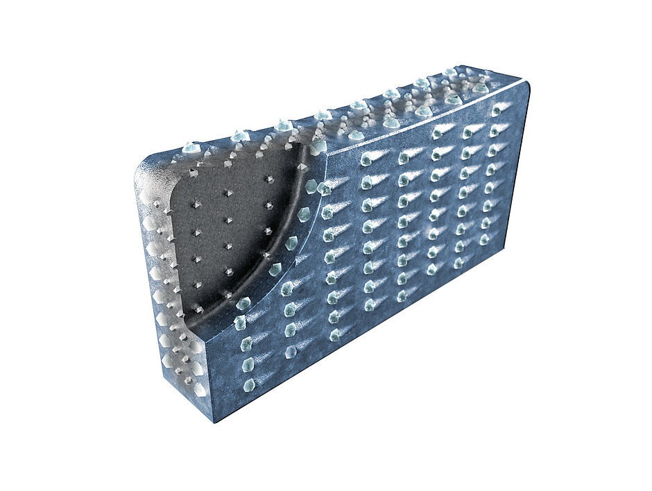 Die »TGD+«-Technologie zeichnet sich durch ein innovatives Bindungssystem aus, das unterschiedliche Härtegrade und sanfte Übergänge innerhalb des Diamantsegments ermöglicht. In Kombination mit verschiedenen Diamantkornqualitäten sorgt dies für eine noch bessere Laufruhe und eine ausgewogenere Lastverteilung. Durch diese gezielte Profilsteuerung werden Leistungsverluste minimiert und der Wirkungsgrad maximiert, was den Selbstschärf-Effekt des Segments und somit des Werkzeuges verstärkt. Am Markt sind bereits die ersten Trockenbohrkronen in »TGD+«-Technologie erfolgreich im Einsatz. Noch im Laufe des Jahres 2025 sollen die ersten Wandsägeblätter mit Segmenten in »TGD+«-Technologie verfügbar sein, gefolgt von den Nassbohrkronen Anfang 2026.j