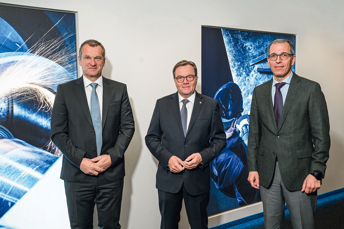 Zum Jahresbeginn wechselte beim Schleifmittelhersteller Tyrolit die Unternehmensspitze (das bauMAGAZIN berichtete in Heft 2/22, Seite 16): Christoph Swarovski gab das Vorstandsmandat zurück, steht Tyrolit jedoch weiter als Beirat zur Seite, und übergab an Thomas Friess. Landeshauptmann Günther Platter (vergleichbar einem deutschen Ministerpräsidenten) nahm den Führungswechsel zum Anlass, sich vor Ort über die Swarovski-Gruppe mit mehr als 4 000 Mitarbeitenden zu informieren. »International erfolgreiche Unternehmen wie Tyrolit sind eine Visitenkarte für den leistungsfähigen Standort Tirol. In diesem Zusammenhang ist es von großer Bedeutung, dass im Stammwerk in Schwaz weiterhin die Firmenzentrale für Entwicklung, Forschung und Innovation seine Heimat findet«, betonte Platter. t
