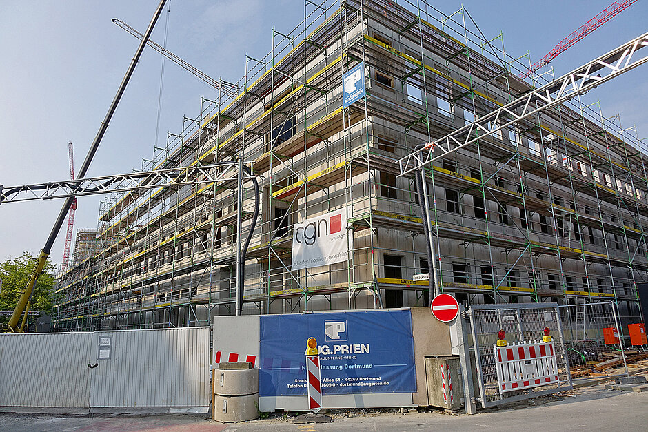 Auf einer Fläche von rund 6 000 m2 realisiert der Bau- und Liegenschaftsbetrieb des Landes Nordrhein-Westfalen (BLB NRW), Niederlassung Münster, aktuell den Ersatzneubau Institutsgruppe 1 für den Fachbereich Physik – ein Großprojekt mit komplexen baulichen Lösungen. Es entstehen drei Gebäude in zwei Baukörpern: ein fünfgeschossiges Hörsaal- und Seminargebäude, ein sechsgeschossiges Institutsgebäude sowie ein daran angeschlossenes dreigeschossiges Werkstattgebäude. Der Aushub der 14 m tiefen Baugrube erfolgte im Frühsommer 2023. Mit den Rohbauarbeiten für die Untergeschosse der ersten beiden Gebäudeteile hat die bauausführende Aug. Prien Bauunternehmung GmbH & Co. KG im September 2023 begonnen.