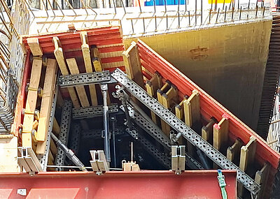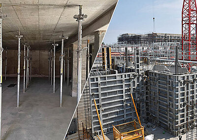 Die leistungsfähige Paneldeckenschalung »CC-4 Protect« mit Aluminiumkonstruktion und integriertem Fallkopfsystem überzeugt durch ihre einfache Handhabung und einen hohen Sicherheitsstandard. Und auch »Batek«, die Großflächen-Stahlrahmenschalung mit patentiertem Ankersystem, zeigte auf der Bauma ihre Stärken: hohe Flexibilität, kurze Montagezeiten und perfekte Betonoberflächen – bei gleichzeitig reduziertem Unfallrisiko durch intelligente Systemergänzungen wie FSK-Konsolen und FSP-Arbeitsbühnen.j