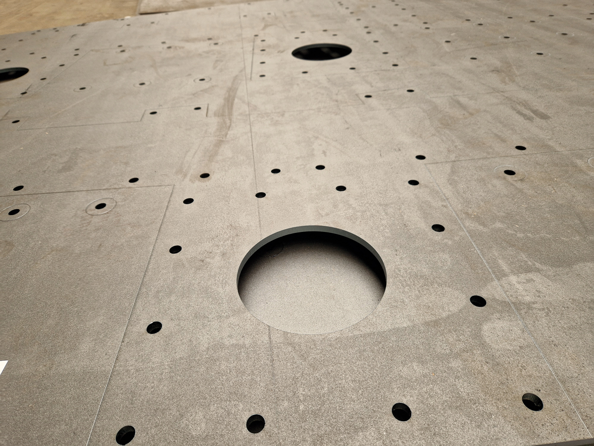 Im Mittelpunkt der Fertigung stehen CO₂- und Fiber-Laserschneidanlagen mit bis zu 12 kW Leistung sowie Tischgrößen von bis zu 4 x 18 m. Abhängig von der Materialgüte lassen sich darauf Blechdicken von maximal 35 mm und Großbleche von bis zu 3 980 x 17 990 mm schneiden. Das Laserschneiden bringt eine Reihe von Vorzügen mit sich. Dazu gehören eine geringe Wärmeeinflusszone, kein bzw. minimaler Verzug durch Wärme, kleinste Toleranzen (+/-0,1 mm), minimale Winkelabweichung (max. 0,3 mm, engere Toleranzen nach Absprache möglich) sowie wenig bis keine Nacharbeit der Schneidkonturen.