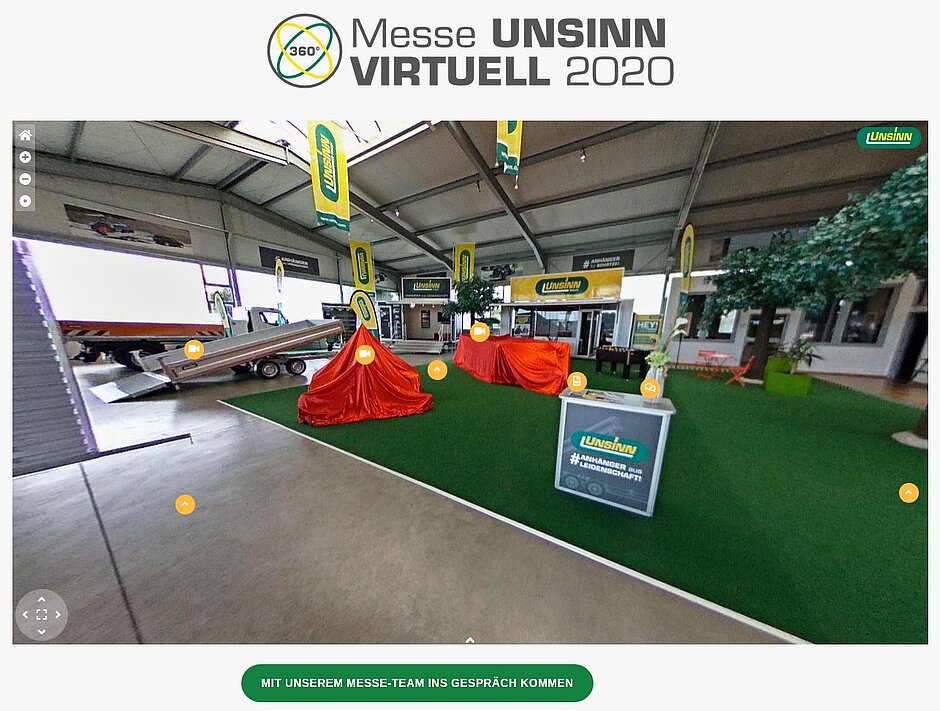 Vom 17. bis 20. September 2020 lud die UNSINN Fahrzeugtechnik GmbH erstmals zur virtuellen Messe ein. Da aufgrund der aktuellen Corona-Lage die Leitmesse GaLaBau in Nürnberg verschoben wurde, nutzte man die Gelegenheit, um sich den Kunden und Interessenten virtuell zu präsentieren.