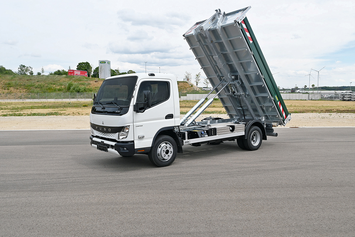 Der Fuso Canter stellt laut Hersteller in Verbindung mit dem Unsinn Abrollhaken die optimale Kombination aus Zuverlässigkeit, Komfort und hoher Tragkraft dar. Auf der Nufam wird ein Vorführfahrzeug mit einer City-Abrollpritsche und einem Planenaufbau präsentiert. Die Unsinn-Abrollsysteme zeichnen sich durch einen eigens entwickelten und inhouse produzierten Hakenlift mit Sanftanlaufsteuerung aus. Durch die intuitive Bedienung des Abrollhakens kommt der Abrollbehälter kontrolliert und geräuscharm am Boden auf. Die City-Pritsche ist zudem mit dem Ladungssicherungssystem Spinlock ausgestattet, das sämtliches Transportgut während der Fahrt zusammen mit der Plane bestmöglich sichert.