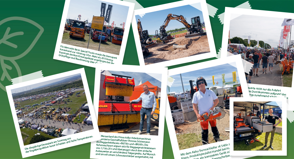 Der große Vorteil der Veranstaltung ist laut Ehrhard, dass »die Demopark kein schlichter Showroom, sondern eine Open-Air-Teststrecke für technikaffine Profis ist«. Dementsprechend gab es angefangen bei handgeführten Motorgeräten bis hin zu schweren Fahrzeugen und einer Vielzahl mechanischer, hydraulischer und digitaler Tools moderne Technik aus mehr als 80 Produktsegmenten unter einsatzähnlichen Bedingungen zu erleben. Die Messe offeriere nach Angaben des Veranstalters wichtige Stimuli für zukunftsorientierte Investitionsentscheidungen, sei es in der Grünflächenpflege, im Kommunaleinsatz oder im Greenkeeping. »Im Kern geht es dabei natürlich immer um einen messbaren Zusatznutzen, um Technik, die sich bezahlt macht«, so der Branchenexperte.