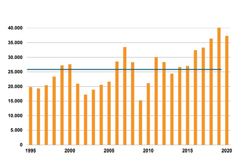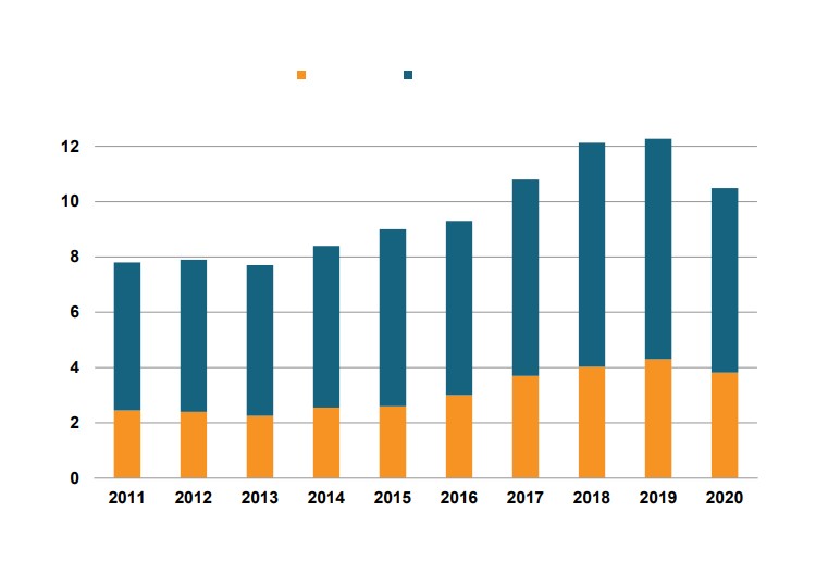 Weltweit ging der Absatz von Baumaschinen 2020 um 3 % zurück, allerdings legte der chinesische Markt um 30 % zu, sodass der Weltmarkt ohne China tatsächlich um 17 % abflaute. In Deutschland und Europa war das Kompaktmaschinengeschäft kaum betroffen, der Großmaschinenbereich verzeichnete dagegen wegen der erforderlichen höheren Investitionen deutliche Rückgänge. In Deutschland liegt der Absatz insgesamt bei – 7 %, – 3 % bei den Kompakt- und – 18 % bei den Großmaschinen. Das 4. Quartal 2020 und das 1. Quartal 2021 zeigten eine verstärkte Nachfrage, sodass die Branche ein Umsatzplus im ersten Halbjahr 2021 erwarten kann. Sie wird die Rückgänge im Jahr 2020 allerdings nicht mehr ausgleichen.
