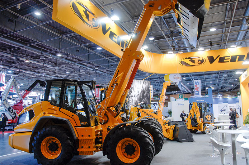 Beim ebenfalls in Paris neu vorgestellten VF 8.63 TL kommt kein hydrostatischer Fahrantrieb zum Einsatz, sondern das Getriebe Venieri Electronic Power Shift (VESP) – sechs Vorwärts- und drei Rückwärtsgänge, die vollständig elektronisch gesteuert werden, versprechen ein Maximum an Traktion. Unter der Motorhaube steckt der Deutz-Vier-Zylinder TDC 3.6, bei dem 136 PS aus 3,6 l Hubraum für den nötigen Vortrieb sorgen. Eine elektronische Drehmomentoptimierung dient der Reduzierung des Kraftstoffverbrauchs. Der Motor erfüllt die Abgasstufe IV/Tier 4 final mit AGR, DOC und SCR. Das Hydrauliksystem folgt der Venieri-Philosophie der Robustheit, Dynamik und Feinfühligkeit. Die maximale Durchflussrate von 140 l/min wird von einer Axialkolbenpumpe mit Load-Sensing-System geliefert. Das interne Volumen der ROPS/FOPS-geprüften Kabine zählt nach Anbieterangaben zu den größten seiner Klasse. §