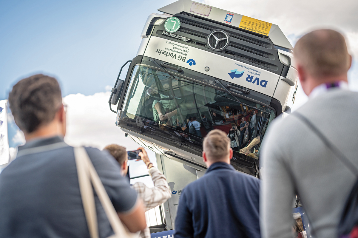 Wie verhält es sich bei einem Unfall bzw. Überschlag? Auf der Messe durfte in der Vergangenheit gern Platz im Fahrzeug genommen werden, um zu erfahren, wie sich der Fahrer in brenzlichen Situation am besten zu verhalten hat.