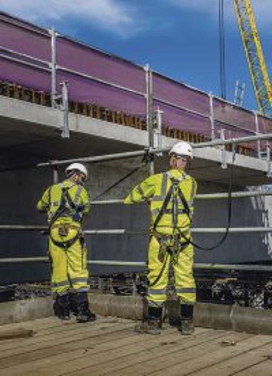 Hier setzt das Verbindungsmittel DSL (Dynamic Self-retracting Lanyard) an: Es lässt sich in voller Länge ausgezogen anschlagen, passt die Länge aber dann dennoch wie ein Autosicherheitsgurt der jeweiligen Arbeitssituation flexibel an. Das überschüssige Gurtband wird eingezogen und bei Bedarf wieder frei gegeben. Dieses Prinzip reduziert die Gefahr des Verhakens und bietet dem Arbeiter gleichzeitig größtmögliche Bewegungsfreiheit.Einen Schritt weiter