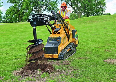 Ein weiteres Messe-Highlight im Segment »Zero Emission« soll der leise und vollelektrische Kompaktlader Conmeq AS15 werden, der laut Hersteller von Grund auf neu entwickelt wurde. Ob Bedienelemente, Benutzerfreundlichkeit, Sicherheit, Beleuchtung, Wartung oder Design – jede Komponente wurde laut Vermeer unter die Lupe genommen. Die höchste Kapazität des Conmeq AS15 liegt, je nach Einsatz, bei 20,3 kWh mit sieben Lithium-Ionen-Akkus und einer Laufzeit von acht bis zehn Stunden. Anspruch der Entwickler war, Funktionen und Material nachhaltig und zukunftsorientiert zu produzieren. Diverse Anbaugeräte sollen die leistungsfähige Maschine zu einem multifunktionalen Allrounder erweitern.