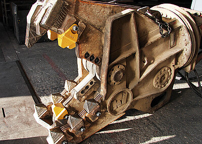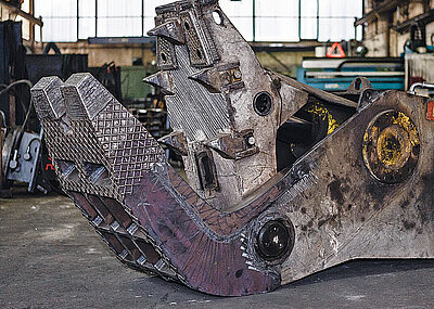 Ein besonderer Fokus des Unternehmens richtet sich jedoch auf die Instandsetzung von Abbruchgeräten. Die erfahrenen Reparaturspezialisten der Firma können nicht nur die Zahnplatten und Brechstege von Betonknackern professionell aufarbeiten. Es werden komplett verschlissene oder auch durchgebrochene Pulverisierer vollständig regeneriert, Hammergehäuse nachgebaut, Schrottscheren und Sortiergreifer erneuert.