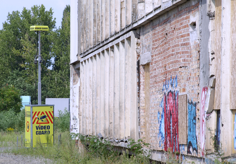 Seit Mitte der 1990er Jahre wartet der Block E des Berliner Rundfunkzentrums Nalepastraße auf seine neue Nutzung. Bis zur weiteren Entwicklung steht das mittlerweile entkernte Gebäude nun leer – und zieht immer wieder illegale, feierfreudige Gäste an. Da Aufzugsschächte, freie Dachflächen und ähnliches jedoch Risikofaktoren darstellen, haben die Verantwortlichen nicht nur die ersten Etagen abgesichert, sondern setzen auch auf eine effektive Videobewachung des Geländes. Beim Betreten Unbefugter schlägt diese nun Alarm.