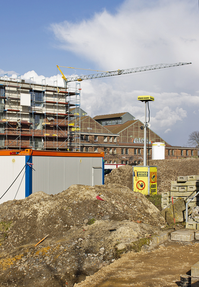 Rund sieben Monate – von Beginn der Ausbauarbeiten bis zur Fertigstellung der Bauabschnitte I und II – waren die intelligenten Kameratürme der Flächenbewachung durch Video Guard Professional vor Ort im Einsatz. »Eine lückenlose und zuverlässige Überwachungslösung während der Baumaßnahmen war uns vor allem deshalb so wichtig, weil das Phoenix-West-Gelände nicht nur sehr weitläufig, sondern auch unübersichtlich ist. Durch die Abgeschiedenheit des Areals wird potenziellem Diebstahl und Vandalismus jede Menge Raum geboten. Dem wollten wir durch entsprechende Schutzmaßnahmen vorbeugen«, erklärt Christoph Helbich, geschäftsführender Gesellschafter der SHA Architekten. Rundgänge durch einen personellen Wachdienst hätten dem hohen Sicherheitsanspruch und der erforderlichen Detektionsreichweite nicht – oder nur mit hohem finanziellem Aufwand – gerecht werden können.