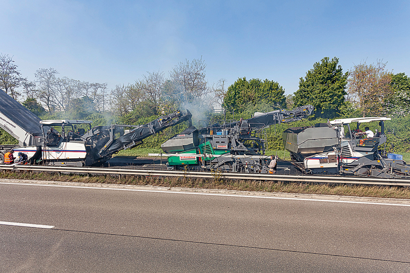 Ein wichtiger Aspekt bei der Investition in Baumaschinen ist auch die Auslastungsfähigkeit. Die InLine-Pave-Maschinentechnik ist dank ihrer Flexibilität auch bei konventionellen Einsätzen in ihrem Element. Der Deckschichtfertiger Super 1800-3i und der Beschicker MT 3000-2i Offset sind lediglich geringfügig modifiziert. Auch der Super 2100-3i kommt weitgehend mit Standardtechnik aus.