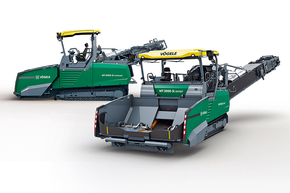 Beschicker entkoppeln die Materialübergabe vom Lkw an den Fertiger und sorgen damit gerade auf Großbaustellen für einen konstanten und effizienten Einbauprozess sowie eine hohe Einbauqualität. Um Bedienfreundlichkeit und Maschineneffizienz zusätzlich zu steigern, setzt Vögele auf eine umfassende Weiterentwicklung: Power-Feeder MT 3000-3i Standard und MT 3000-3i Offset mit schwenkbarem Förderband verfügen über das effiziente und ergonomische Strich-3-Maschinenkonzept. Dazu gehören das intuitive Bedienkonzept ErgoPlus 3, die Autofunktionen AutoSet Plus und das Lkw-Kommunikationssystem PaveDock Assistant.