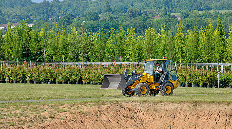 Rund 30 Autominuten vom Volvo-Standort in Konz bei Trier entfernt – wo der elektrische L25 ab Mitte des Jahres gebaut werden soll – befinden sich die Leick-Baumschulen. Das deutsche Unternehmen im saarländischen Merzig ist der erste Kunde weltweit, der den neuen »grünen« Radlader von Volvo CE testet. Die Baumschule mit Garten- und Landschaftsbaubetrieb ist bereits seit 34 Jahren Volvo-Kunde.