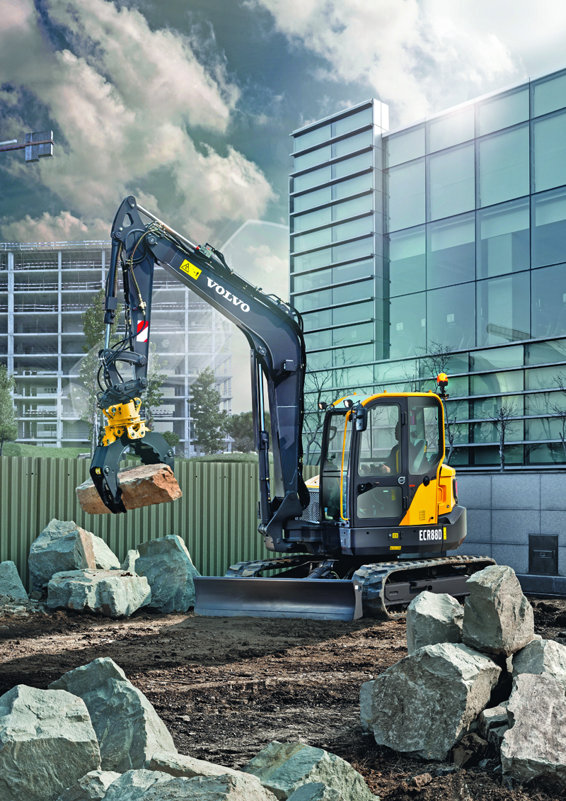 Den überarbeiteten ECR88D gibt es mit einteiligem Ausleger (optional zweiteilig) und verschiedenen Stielen und Löffeln für maximale Flexibilität. Verfügbar ist ebenso ein breiteres Planierschild mit 600-mm-Stahlkette. Dank des dreiteiligen X-Rahmen-Unterwagens zeigt sich der ECR88D robust. Zur D-Serie bietet Volvo CE eine Vielzahl optionaler Schnellwechsler und ein neues Sortiment an Original-Volvo-Anbaugeräten an.