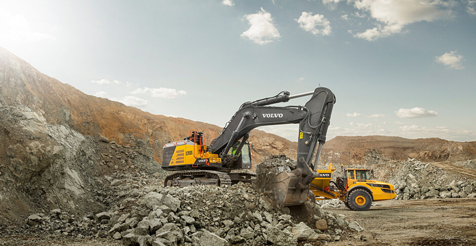Der EC950F ist zwar der größte Bagger im Portfolio von Volvo CE, aber nicht nur seine schiere Größe ist beeindruckend. Mit seiner unvergleichlichen Leistung, Produktivität und Betriebszeit ist der EC950F die perfekte Ergänzung für die Beladung des Volvo-Dumpers A60H.