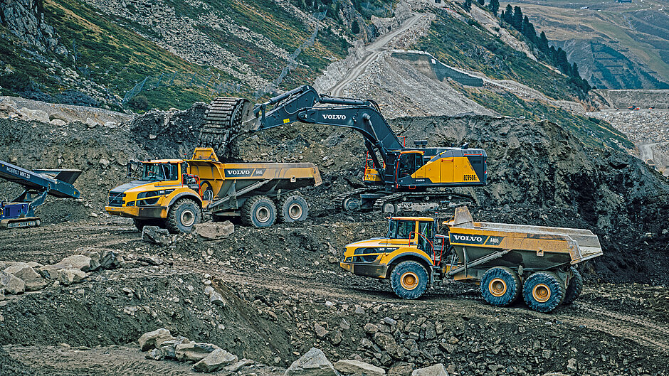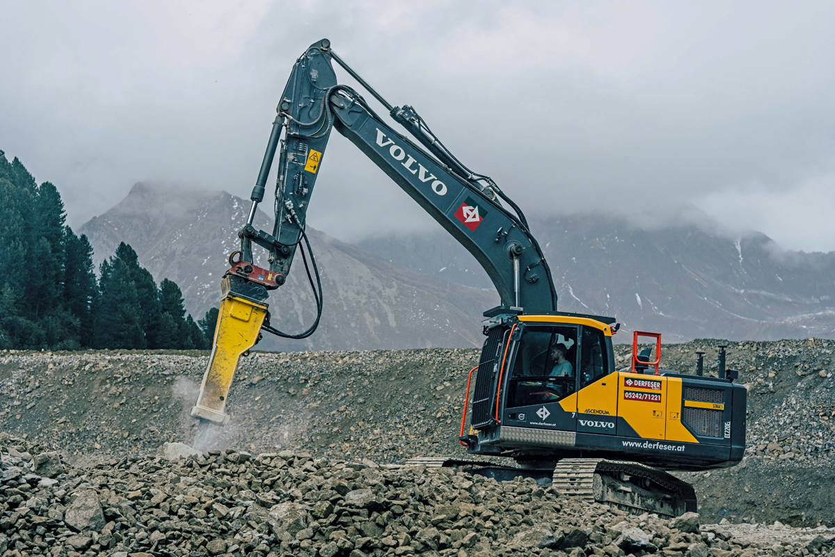 Damit spannt er den Bogen zu den rund 200 Baumaschinen, die beim Projekt im Einsatz sind und von denen mehr als 60 von Volvo CE stammen. Flaggschiff der Baggerflotte ist ein nagelneuer »EC950F«. Der 90-Tonner-Bagger ist momentan der erste seiner Art in Österreich, bekommt aber bald Verstärkung: Ein zweites Exemplar hat die Arbeitsgemeinschaft bereits geordert. »Wir haben Ladespiele simuliert, und daraus ergab sich ein Bedarf zwischen 90 und 100 t«, erklärt Wetzlinger. »In dieser Größenklasse ist der Markt groß – aber eigentlich für uns auch eingeschränkt, weil wir mit Partnern arbeiten wollen, auf die wir vertrauen können. Und wir wissen nun mal, dass uns mit Ascendum ein guter Partner in gewohnter Qualität zur Verfügung steht.«