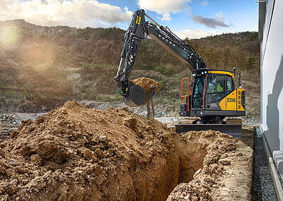 Die Verbesserungen gegenüber den Vorgängern betreffen u. a. eine größere Reichweite, eine höhere Hubkapazität, eine Verringerung des vorderen Schwenkradius um mehr als 0,5 m und eine um 10 Prozent höhere Motorleistung beim »EWR150«. Im Modelljahr 2026 wird zudem eine von Volvo patentierte, elektrisch einklappbare Leiter eingeführt, ebenso eine neue Vierradlenkung. Mit dem laut Volvo CE kürzesten Heckschwenkradius ihrer Klasse, kombiniert mit einem reduzierten Frontschwenkradius, sind die Mobilbagger »EWR150« und der »EWR170« »die perfekten Maschinen für Arbeiten in städtischen Umgebungen und auf engstem Raum«.