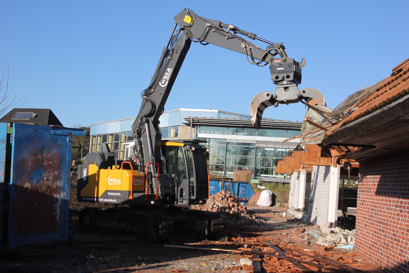 Seit 1995, also auch bereits zu den Zeiten des Vorgängerunternehmens, setzt Jörg Schäperklaus Volvo-Maschinen ein. Als jüngster Zuwachs ging der 15-Tonnen-Raupenbagger EC140EL im November 2016 bei WBA in Betrieb. Ist der nicht etwas zu klein für den Abbruch? Die Frage an den Geschäftsführer liegt auf der Hand. Der hat auch gleich plausible Gründe für sein kompaktes Gerät zur Hand: „Natürlich setzen auch wir auf unseren Abbruchbaustellen eher schwere Bagger zwischen 28 und 45 Tonnen Gewicht ein. Aber der kleinere hat auch seine Vorteile: Wenn wir auf engen Baustellen nicht gleich mit dem schweren Gerät an die Gebäude herankommen, schicken wir den EC140E vor, damit der vorab kleinere Gebäudeteile, Anbauten oder Vorbauten abreißt und Platz für die Großen macht. Kleinere Abbrüche wie Einfamilienhäuser schafft der EC140E auch spielend ganz alleine.“