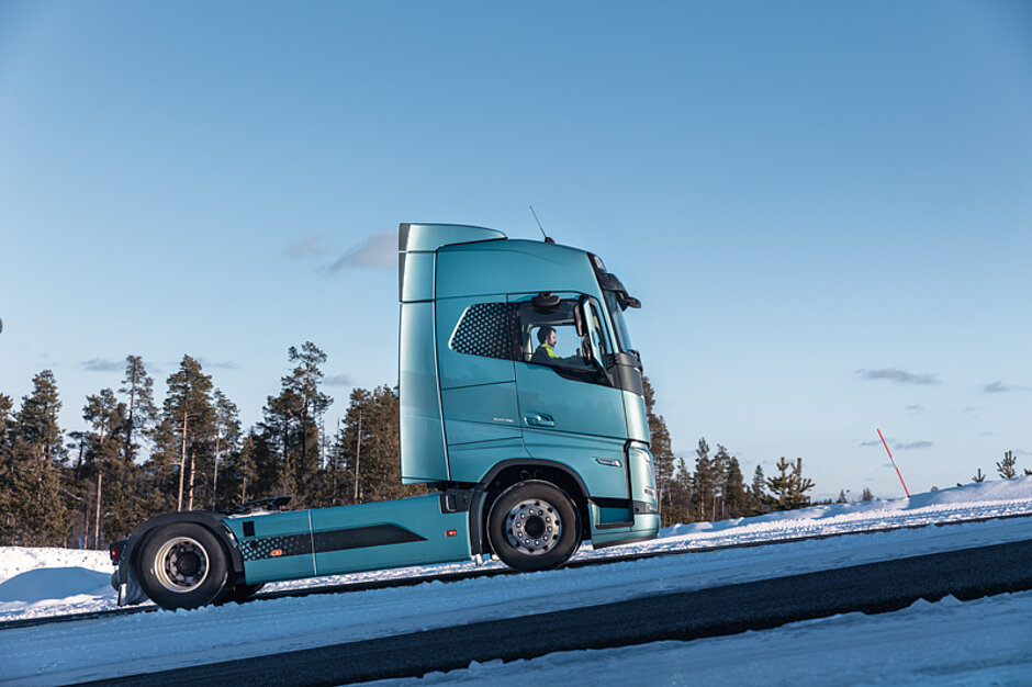 Bei dem getesteten Lkw handelte es sich um einen Volvo FH Electric, ein abgasfreies Fahrzeug mit einer Dauerleistung von 490 kW und einem Gesamtzuggewicht von 40 t.