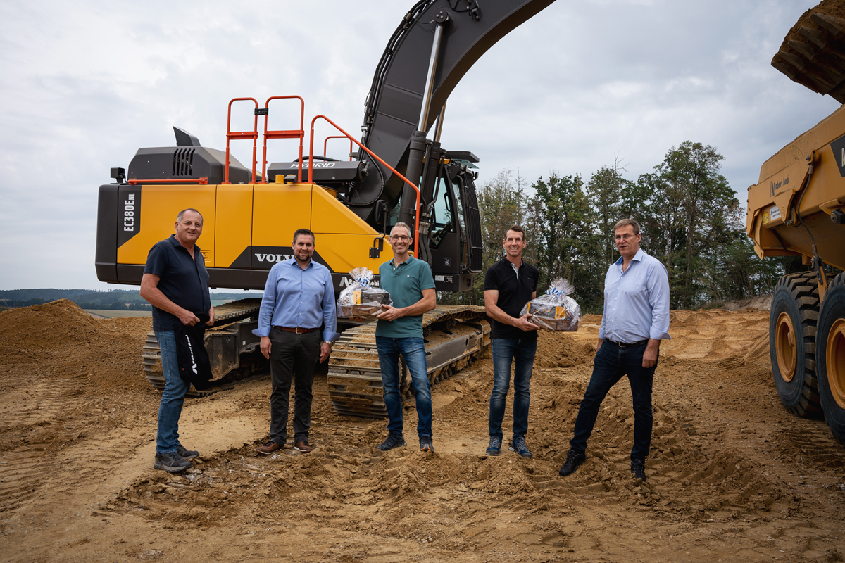Eichstetter favorisiert Volvo-Baumaschinen wegen ihrer Effizienz und betrieb zu diesem Zeitpunkt bereits acht Volvo-Radlader mit drei bis 45 Tonnen Einsatzgewicht, sowie vier Mobilbagger, zwei Volvo EW160E und zwei Volvo EW220E und einen Raupenbagger Volvo EC300E. Als im Jahr 2022 der Bedarf nach einem größeren Kettenbagger erwuchs, wandten sich die beiden Geschäftsführer an Gerhard Brunlehner von der Robert Aebi GmbH. Die beiden verbindet eine über 20-jährige Zusammenarbeit und der Verkaufsberater weiß genau um den Bedarf und die Wünsche seines Kunden.