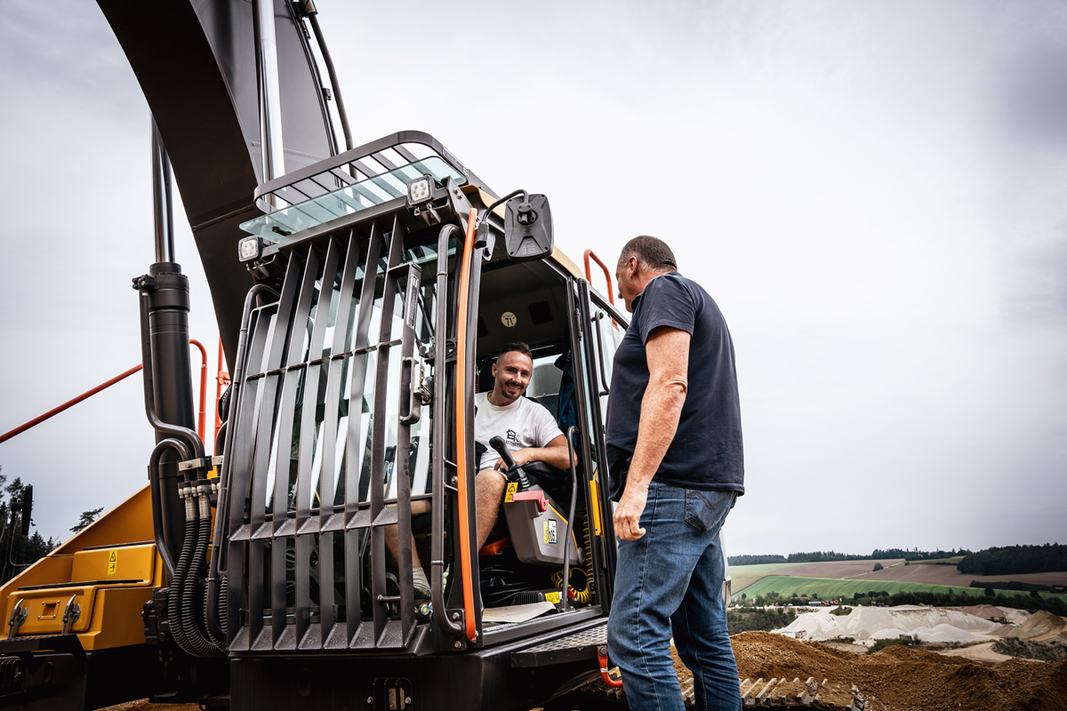 Zudem legt der Erdbau-Profi großen Wert auf einen umweltschonenden Abbau und interessierte sich deshalb besonders für die moderne Hybridtechnologie von Volvo CE. Auf den Volvo EC300E Hybrid hatte er bereits ein Auge geworfen, dieser war allerdings schlicht zu klein. Deswegen entschied man sich, nach einem ausgiebigen Test für den EC380 konventionell. Um die Probleme beim Transport zu umgehen wurde der EC380 mit absetzbaren Kontergewicht ausgerüstet. Als Brunlehner ihn im Sommer 2022 über die Einführung des neuen Volvo EC380E Hybrid informierte, schlug der Geschäftsführer sofort zu und die HYBRID-Option wurde nachgeordert. Wenige Wochen später war er der stolze Besitzer des ersten Volvo EC380E mit Hybrid-Option, der in Europa ausgeliefert wurde.