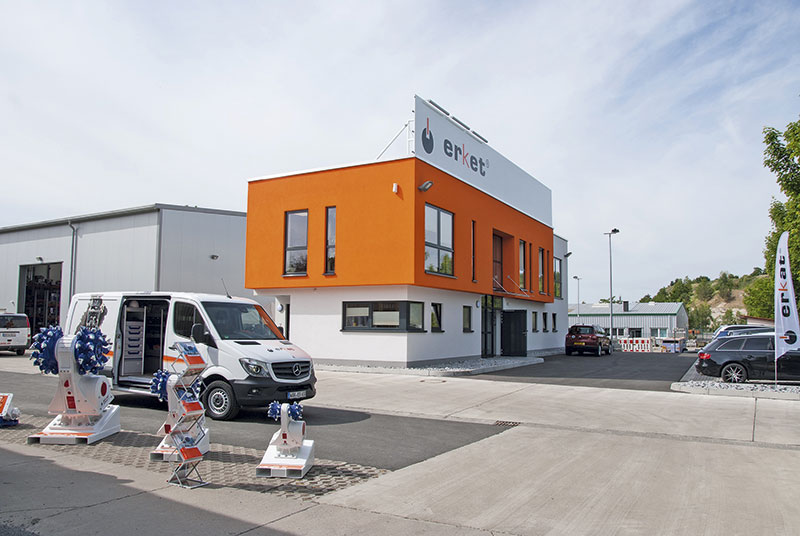 Von Anfang an zusammengearbeitet hat Klaus Ertmer mit Roger Dähne, mit dem er dieses Getriebekonzept entwickelt hat, das den Erfolg von Erkat begründet. »Unser Alleinstellungsmerkmal ist immer noch dieses Getriebe, das sich als sehr robust und zuverlässig erwiesen hat«, so Ertmer. Kernelement des Konzepts sind dabei drei Zahnräder. »Diese bieten genügend Platz für eine größtmögliche Lagerung, wodurch die Stöße sehr effektiv abgefangen werden«, erläutert Ertmer das System. »Diese drei Zahnräder bilden quasi einen Puffer zwischen Schneidrädern und Motor.« Deshalb ist für ihn diese technische Lösung »ganz klar robuster« im Vergleich zu einem Direktantrieb. »Wir behaupten uns mit unserem Antrieb schon seit vielen Jahren, was ja auch unser weltweiter Marktanteil von 70 % zeigt. Neue Mitbewerber müssen erst einmal über einen längeren Zeitraum nachweisen, ob sie hinsichtlich Qualität, Produktivität und Service mit uns mithalten können.«Eine weitere entscheidende Komponente für den Erfolg von Erkat ist für Klaus Ertmer neben Produkt- und Servicequalität die stets hohe Innovationskraft des Unternehmens. Viele Neuentwicklungen basieren dabei auf Nachfragen von Kunden. »Oftmals war einer unserer Kunden der Impulsgeber für eine Neu- oder Weiterentwicklung«, sagt auch Serviceleiter Ralf Schumann. »Das läuft dann immer nach einem ähnlichen Schema ab: Der Kunde hat ein Problem, das wir lösen sollen. Entweder durch Weiterentwicklung einer existierenden Maschine oder, funktioniert das nicht, durch eine Neuentwicklung.« Wie beispielsweise die Betonschneidräder der Erwetor-Serie, die auf Anregung eines Kunden aus Qatar entwickelt wurden. Oder wie die Kettenfräse der Erkator-Serie, deren neuestes Model mit einer Schneidkopfbreite von 65 cm demnächst präsentiert werden soll.