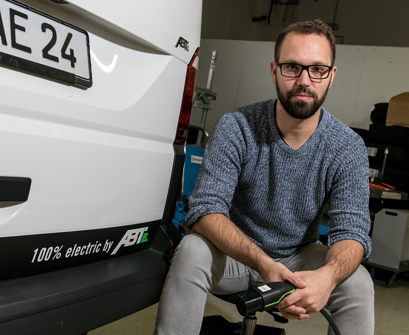 ABT Sportsline aus dem Allgäu übernimmt im Rahmen seiner Sparte ABT e-Line die Umrüstung der zugelieferten Grundfahrzeuge und bringt den Elektromotor, die Elektronik und die Unterflurbatterie so an, dass der Innenraum weiterhin flexibel genutzt werden kann: Entsprechend verfügt auch die elektrifizierte der aktuellen Caddy-Reihe als Kastenwagen über bis zu 4,2 m³ Laderaumvolumen. »Das Fahrzeug besitzt eine aus 16 Modulen bestehende Unterflurbatterie von 37,3 kWh und wird von einem Elektromotor mit 200 Nm und 83 kW Leistung angetrieben«, sagt Jens Häberle, Leiter Produkt-Management ABT e-Line. Obwohl die Batterie rund 330 kg auf die Waage bringt, entstehe durch den Wegfall des Verbrennungsmotors lediglich ein Zusatzgewicht von 130 kg.